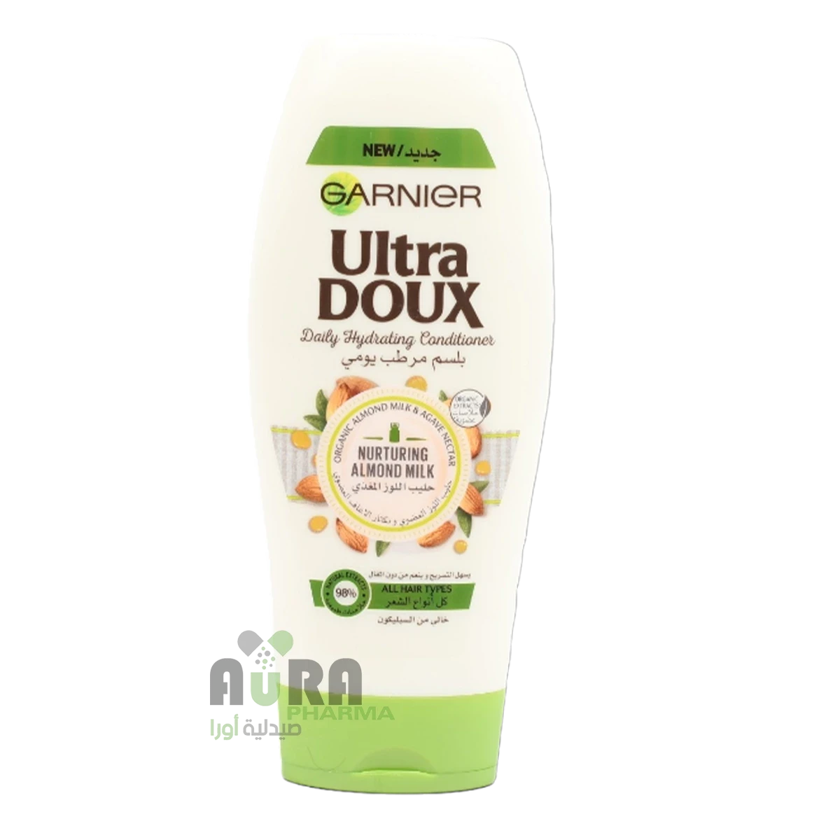 بلسم ترطيب يومي مع حليب اللوز العضوي ونحيق العقيق العضوي لجميع أنواع الشعر.