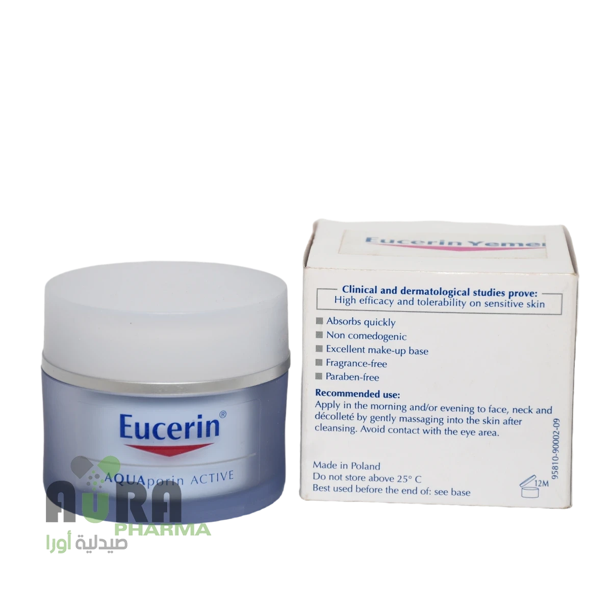 يوسيرين مرطب للبشرة العادية الى المختلطة هو مرطب منعش للوجه يعزز من نظام ترطيب البشرة ويترك البشرة ناعمة ومشرقة ومشعة. بشرتنا تحتاج الماء للعمل بكفاءة وفعالية. البشرة الرطبة هي ناعمة ولينة وتبدو مشعة. عندما يتم اختراق حاجز الحماية الطبيعي للبشرة ، فإنه يفقد الرطوبة ويصبح جاف. تبدو البشرة الجافة مملة ، وشعورها بالضيق ، وغير قادرة على إبقاء المخرشات الخارجية في مكانها. يصبح حساسا نتيجة لذلك. ترطيب مكثف وطويل الأمد ضروري للحفاظ على مظهر البشرة والشعور بأفضل حال. معظم المرطبات تحسن ترطيب البشرة عن طريق الحد من تبخر الماء من الجلد و / أو من خلال رطوبة ملزمة في الطبقة الخارجية من الجلد مع مواد مرطّعة مثل الجلسرين. يحتوي جلدنا أيضًا على نظام ترطيب خاص به - Aquaporins. ينقل الماء بين خلايا الجلد ويدعم ترطيب البشرة من الداخل. يعزز Eucerin AQUAporin ACTIVE من قوتها الطبيعية. تحتوي الصيغة على Gluco Glycerol ، أحد مكونات الترطيب الأكثر حداثة ، والذي أثبت أنه يزيد من عدد Aquaporins في الجلد. وهذا يعني أنه بالإضافة إلى الحد من التبخر وربط المياه في الطبقات الخارجية من الجلد ، فإن Eucerin AQUAporin ACTIVE يعزز نظام ترطيب الجلد الخاص به. الملمس الخفيف والمنعش لـ Eucerin AQUAporin ACTIVE للبشرة العادية إلى المختلطة يوفر ترطيبًا مكثفًا على مدار 24 ساعة ، ويتم امتصاصه بسهولة من الجلد. يخفف ضيق ويترك البشرة ناعمة ونضرة. تم إثبات Eucerin AQUAporin ACTIVE سريريًا وجلديًا أنه متوافق مع البشرة الحساسة ولا يحتوي على رائحة أو بارابين.الاستخدام