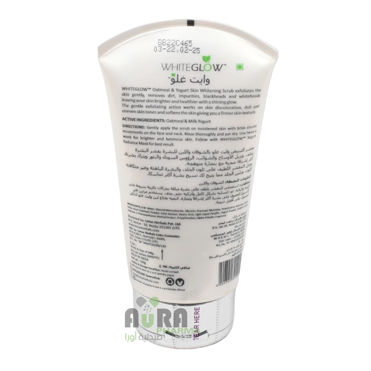 مقشر تبييض البشرة بالشوفان والزبادي ذو الوهج الأبيض من لوتس هيربالز يقشر البشرة ويضيف الحياة إلى ألوان البشرة الباهتة وغير المستوية