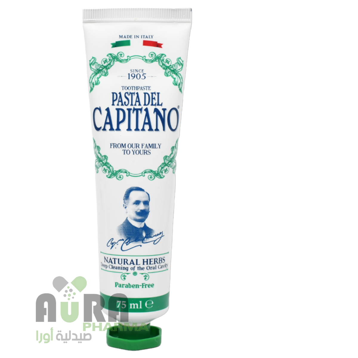 معجون الأسنان "كابيتانو" بالأعشاب الطبيعية بحجم 75 مل هو منتج مخصص لتحسين صحة الفم باستخدام مكونات طبيعية. يعتبر هذا المعجون خيارًا مناسبًا لأولئك الذين يفضلون العناية بالأسنان باستخدام مكونات طبيعية وفعالة. إليك بعض الفوائد المحتملة لاستخدام هذا المعجون:
