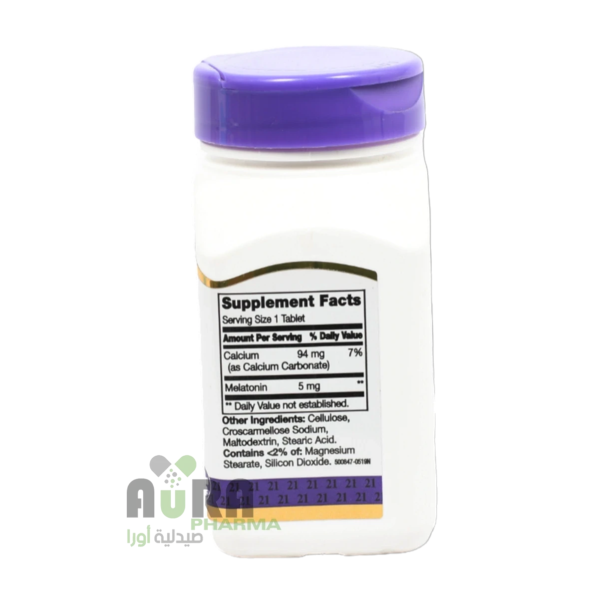 السليولوز, كروس كارميلوز الصوديوم, مالتوديكسترين, حمض الستياريك. يحتوي على أقل من 2 من: ستيارات المغنسيوم, ثاني أكسيد السيليكون.