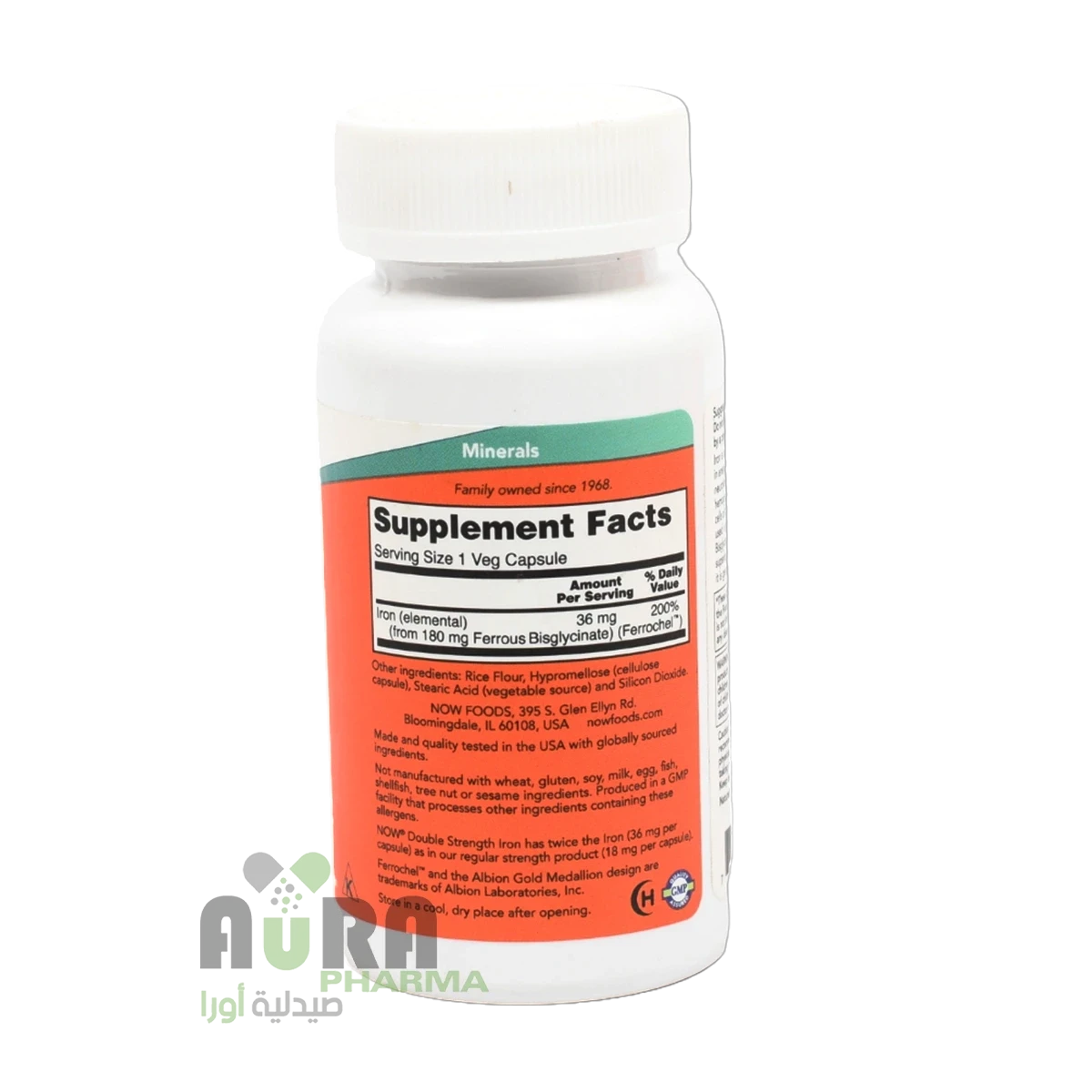 الحديد معدن أساسي يلعب أدوارًا محورية في إنتاج الطاقة، ووظيفة جهاز المناعة، والصحة العصبية. الحديد عنصر أساسي للهيموجلوبين، وهو جزيء ينقل الأكسجين إلى خلايا الجسم والميوجلوبين الذي يعمل على ربط الأكسجين المستخدم في أنسجة العضلات. مكرر جليسينات الحديد Ferrochel™ من NOW، الذي أظهر سريريًا قدرة امتصاص فائقة وأداء جيد، لأنه لطيف ولا يسبب الإمساك.