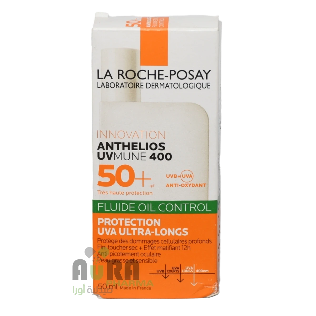 أعلى واقي من الشمس * UVA و UVB مع طيف واسع SPF50 + ، يحتوي على Mexoplex® ، وهو جيل جديد من نظام الترشيح ، مع مياه الينابيع الحرارية La Roche-Posay الفريدة. يجمع هذا السائل الخفيف الوزن والمزيل للمعة بين الحماية العالية من أشعة الشمس فوق البنفسجية الطويلة (A) / المتوسطة (B) مع Airlicium لامتصاصه بسهولة في البشرة الدهنية والمعرضة للشوائب مع لمسة نهائية خالية من اللمعان.