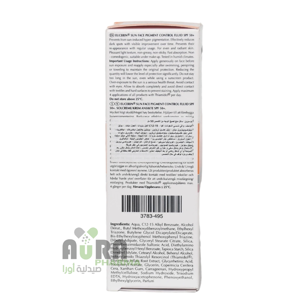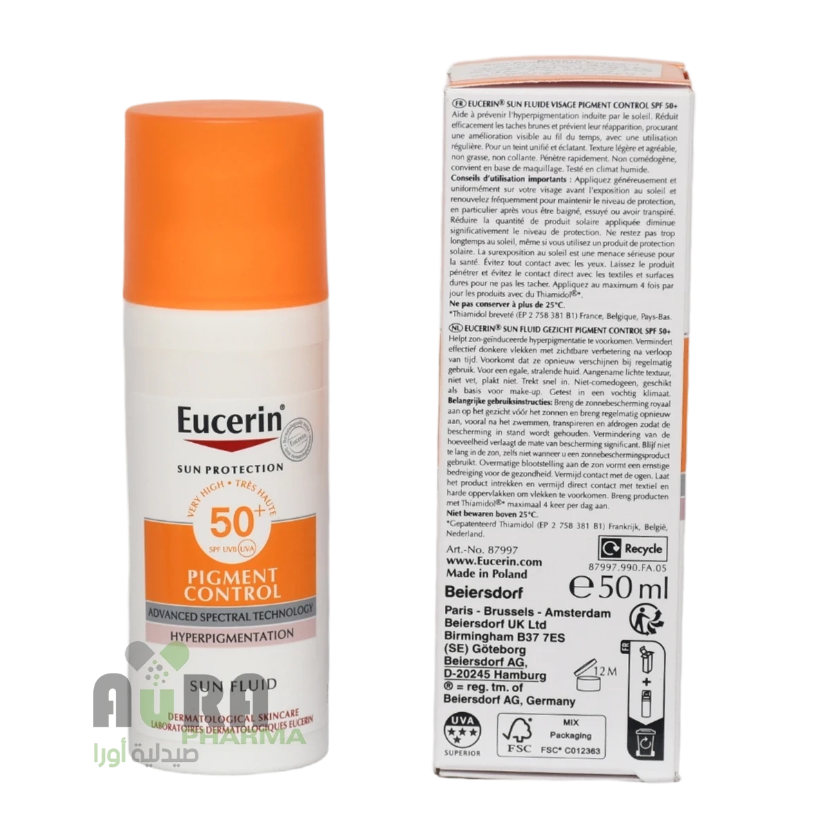 سائل Eucerin Even Pigment Perfector Sun Fluid SPF 50+ هو واقٍ شمسي يومي لجميع أنواع البشرة يساعد على منع فرط التصبغ الناجم عن الشمس. تجمع تقنية الطيف المتقدمة بين فلاتر UVA/UVB واسعة النطاق ومستقرة ضوئيًا (1) لتوفير حماية عالية ضد أشعة UV وعنصر Licochalcone A لتحييد الذرات الحرة الناتجة عن أشعة UV وضوء HEVIS. كما يحتوي واقي الشمس المضاد للتصبغ على Glycyrrhetinic Acid الذي يدعم آلية إصلاح الحمض النووي للبشرة.